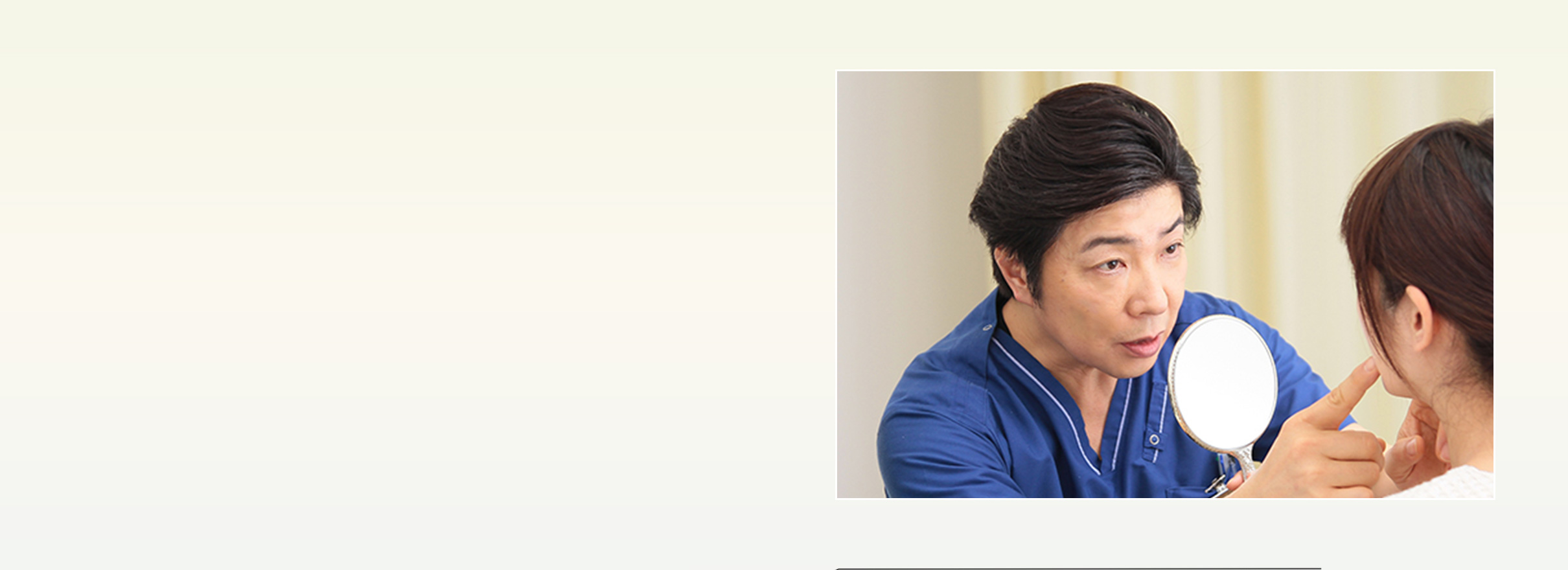 望む印象、職業など、バックグラウンドやライフスタイルまで細かくヒアリングし、最適と思われる治療をご提案いたします。不安に思われることのないよう治療の流れや方法、術後のアフターケアまでわかりやすく、丁寧にお話しさせていただきます。