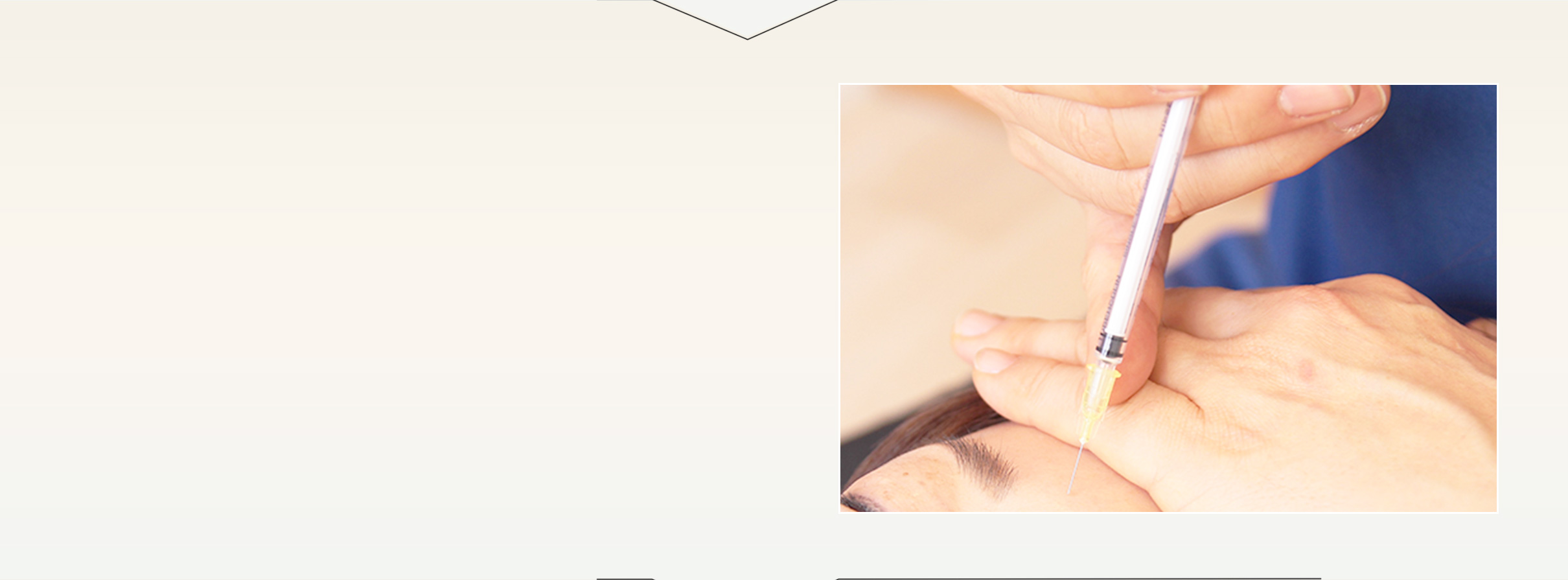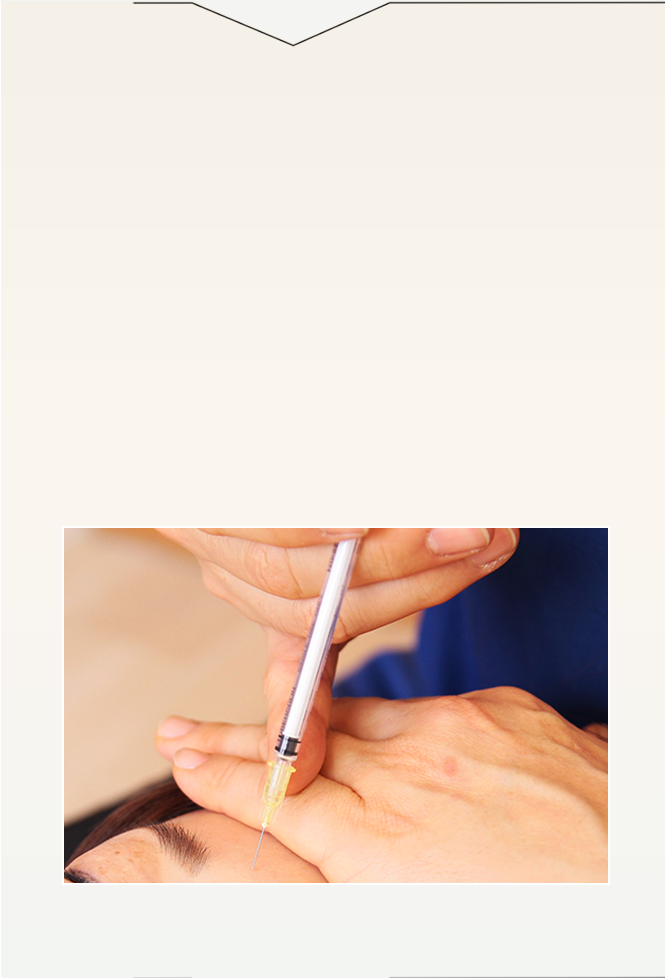 麻酔と極細針を使用して治療を行うため、痛みはほとんどありません。また気になる部位のみに注入するだけでなく、あえて他のパーツに注入してバランスをとることで、1つだけでなく複数のお悩みが解消される場合もございます。