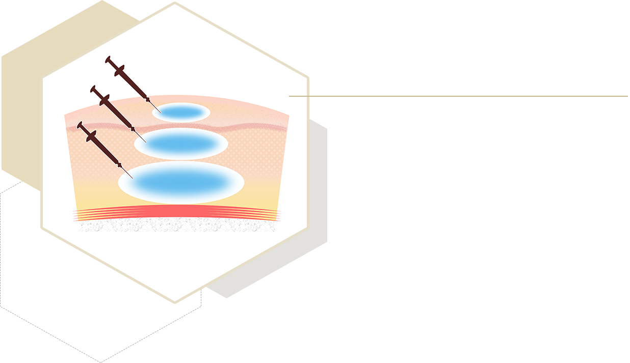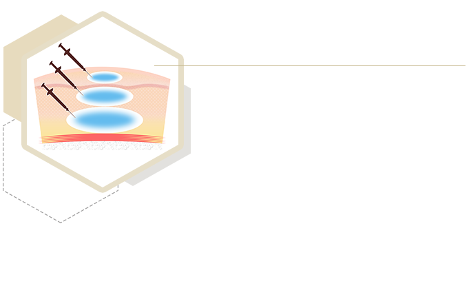 複数の異なるヒアルロン酸を深さに応じて重ねて注入する、当院オリジナルのテクニックです。