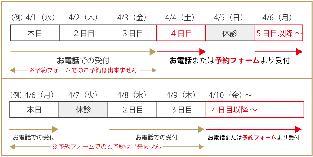 当院より折り返し予約確認のお電話をさせていただき、お客様とご連絡が取れました時点でご予約は確定となりますので、予めご了承ください。